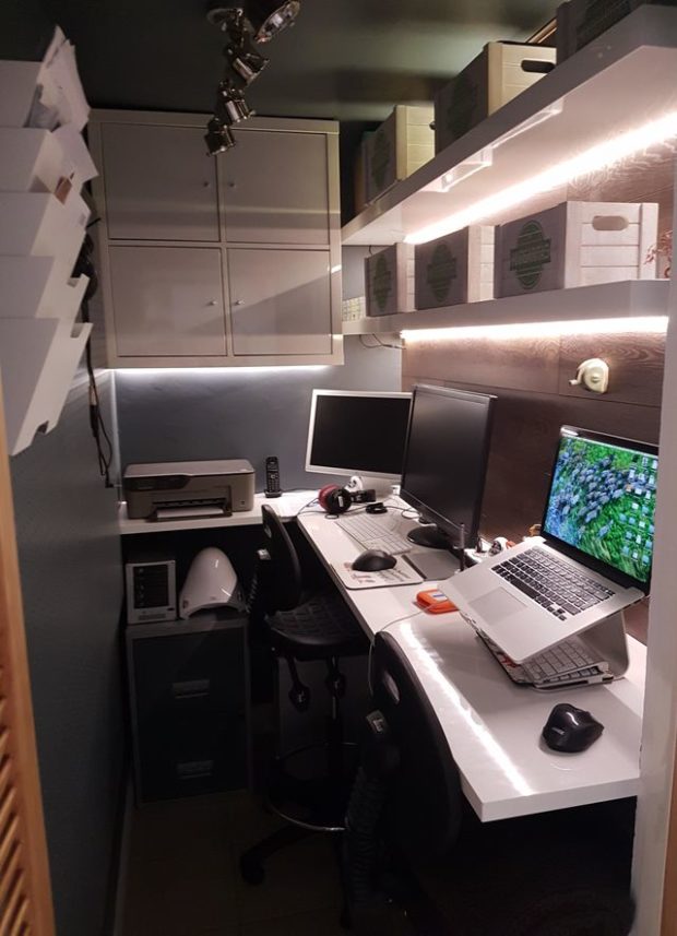 - garde-manger - L'option, bien sûr, n'est pas pour tout le monde, mais elle a aussi sa place. La surface de la pièce doit être suffisante pour accueillir une petite table et une chaise, l'espace sous le plafond est utilisé pour le stockage. Il conviendra ici tableau magnétique. Dans un espace de bureau sans fenêtre, l'éclairage nécessite une attention particulière.