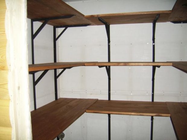 Si une paire de rangées d'étagères est située dans le garde-manger, il doit y avoir un espace entre elles pour le mouvement normal et le transport des choses. La distance minimale entre les étagères est de 70 cm.