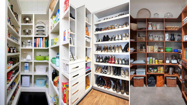 - si le garde-manger est plus ou moins spacieux, il est possible d'y placer une partie des vêtements, pour lesquels ils utilisent une barre, plusieurs tiroirs ou des étagères. Ce dernier peut être recouvert de votre propre porte.