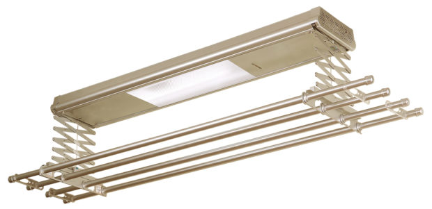 - accordéons de plafond. Ici, le principe, comme avec un accordéon mural, seul le sèche-linge est installé au plafond et, si nécessaire, l'unité avec les barres transversales pour le séchage est abaissée et fixée à la hauteur requise. Après avoir suspendu le linge, il peut être soulevé afin que les choses n'interfèrent pas avec la libre circulation. Dans ces séchoirs, des cordes et des tubes peuvent être utilisés, et ils sont généralement situés au même niveau. Le sèche-linge est compact, mais le linge de grande taille est difficile à sécher;