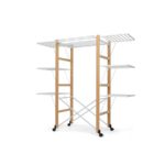 À les avantages les séchoirs à plancher comprennent la mobilité, la facilité d'installation, une large gamme, la compacité une fois pliée et la capacité de résister à de lourdes charges. Les plus grands séchoirs, cependant, peuvent peser décemment, mais pour la facilité de mouvement, ils sont équipés de roues.