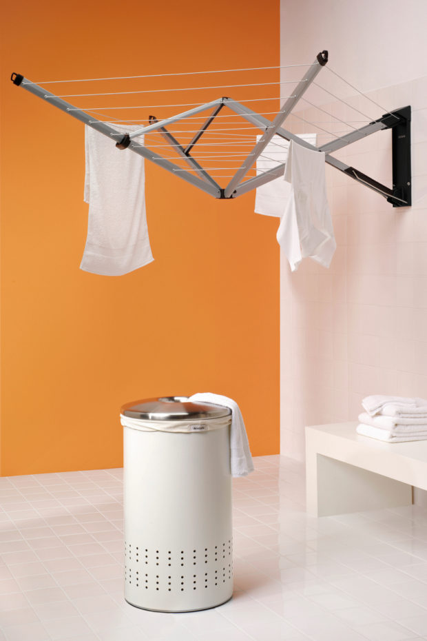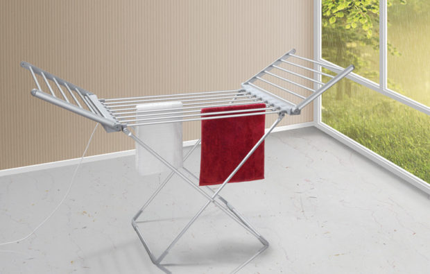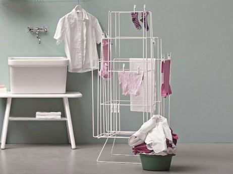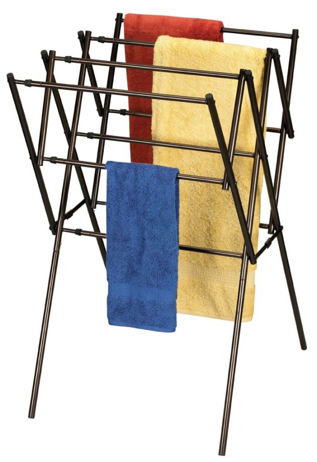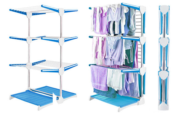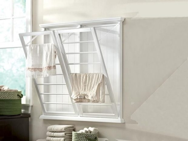 Séchoirs pliants avoir un design assez simple, peut supporter un poids décent. Bien qu'il n'y ait pas besoin d'un sèche-linge, il est fixé au mur et prend un minimum d'espace, encore moins que d'habitude porte-serviettes chauffant. Après le lavage, un tel sèche-linge est incliné et l'angle d'inclinaison peut être quelconque. Le processus de pliage et de dépliage prend quelques instants, il est pratique d'utiliser le sèche-linge, la largeur et le nombre de cloisons peuvent varier dans de larges limites. Habituellement, ils sont installés dans les salles de bain, mais sur le balcon, ils seront tout à fait appropriés.