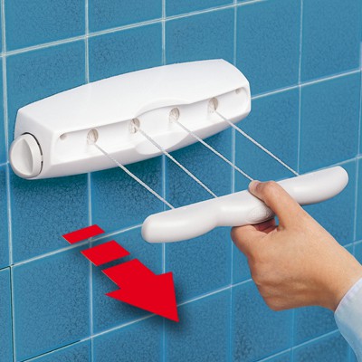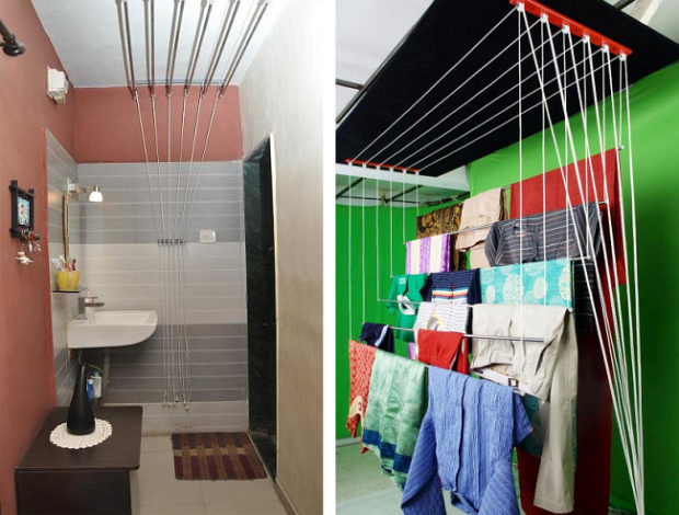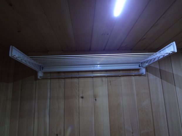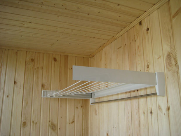 - déjà mentionné séchoirs "lianes" avec tubes réglables en hauteur. Les garnitures peuvent fixé au plafond, puis le séchoir du mur se transforme en plafond, mais une partie de la conception doit encore être montée sur le mur pour plus de commodité (il s'agit d'un bloc avec des cordes pour contrôler la hauteur des tubes);