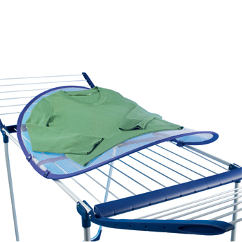 Séparément, il convient de souligner séchoirs pour les choses délicates. Il s'agit d'une grille tendue sur un cadre incurvé. Sur la grille, vous pouvez parfaitement disposer les choses qui nécessitent des conditions de séchage spécifiques. Un tel séchoir peut être installé sur une baignoire, une planche à repasser, une table ou sur un séchoir conventionnel, il assure un séchage doux et une circulation d'air.