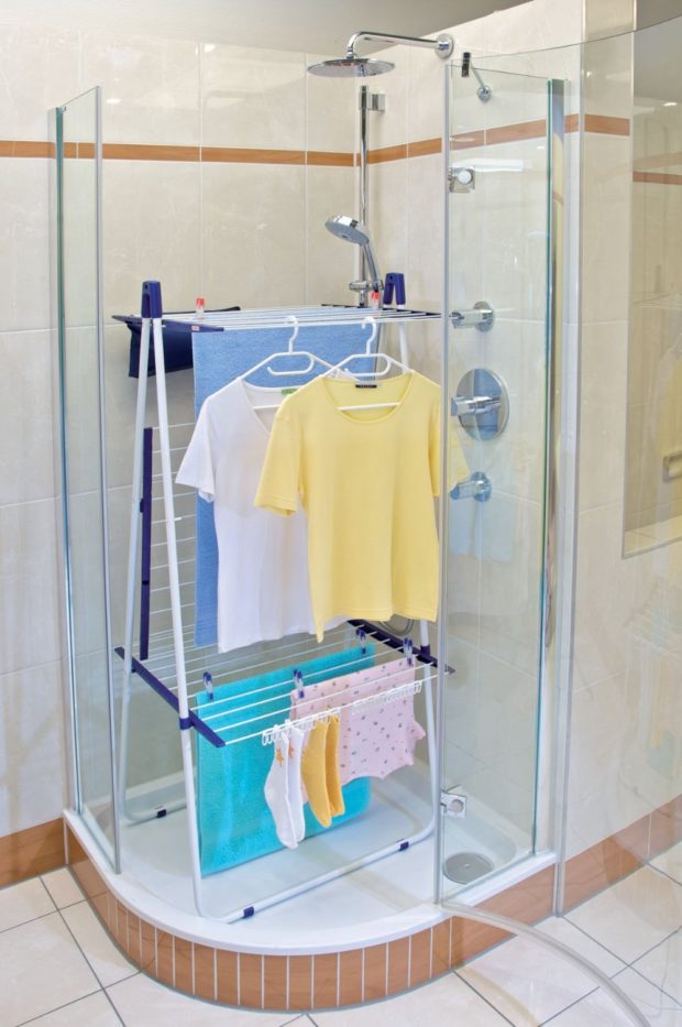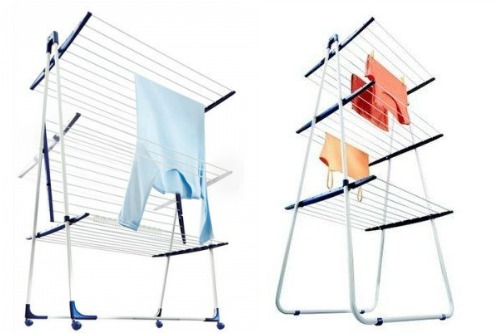 Séchoirs pliants avoir un design assez simple, peut supporter un poids décent. Bien qu'il n'y ait pas besoin d'un sèche-linge, il est fixé au mur et prend un minimum d'espace, encore moins que d'habitude porte-serviettes chauffant. Après le lavage, un tel sèche-linge est incliné et l'angle d'inclinaison peut être quelconque. Le processus de pliage et de dépliage prend quelques instants, il est pratique d'utiliser le sèche-linge, la largeur et le nombre de cloisons peuvent varier dans de larges limites. Habituellement, ils sont installés dans les salles de bain, mais sur le balcon, ils seront tout à fait appropriés.