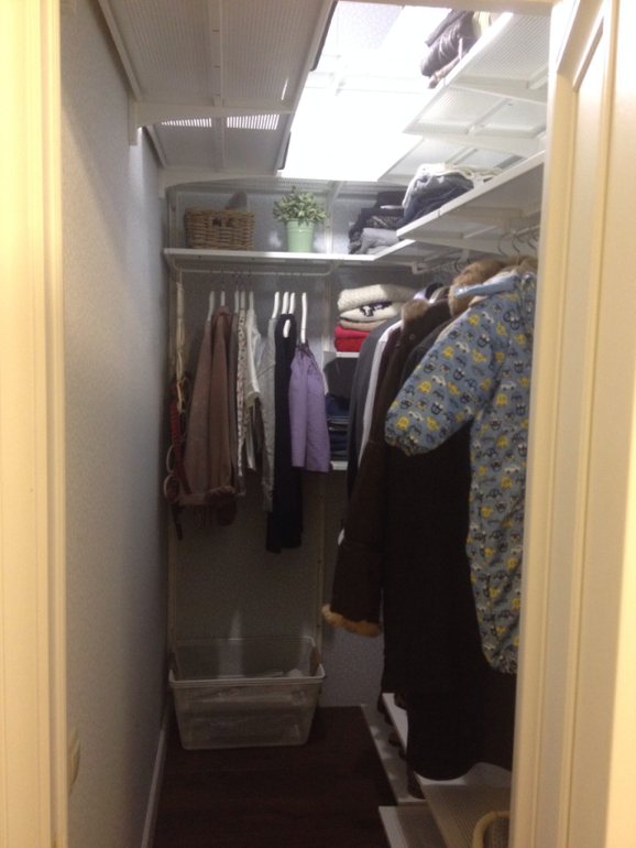 Essayez de tirer le meilleur parti de l'ensemble du dressing. S'il reste de la place sur les étagères, vous pouvez y placer des paniers. Ce serait bien de fournir un endroit pour ranger les parapluies et les planches à repasser.