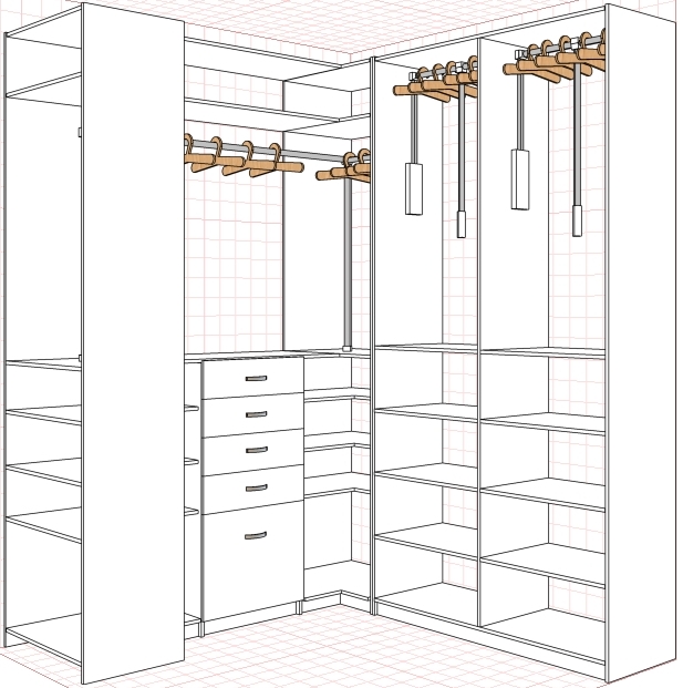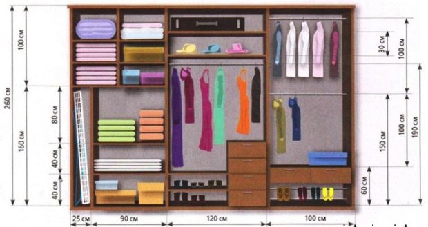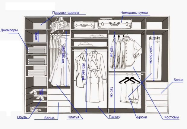 Pour commencer, il faut mesurer les paramètres des locaux existants et dimensionner le futur dressing sur papier. Maintenant, nous déterminons les éléments doit être placé dans le dressing, selon le type et la quantité de vêtements. Certains leur sont promus. exigences: