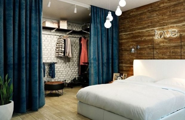 - rideaux et écrans il est difficile d'appeler des cloisons à part entière, mais elles sont également parfois utilisées pour séparer l'armoire.