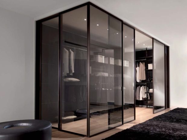 - des portes transparentes et un éclairage intégré dans les étagères rendront la pièce visuellement un peu plus grande;