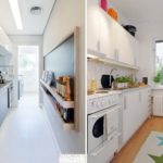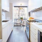 Il est le plus difficile d'équiper une longue cuisine. En règle générale, la planification et l'installation linéaires de tous les meubles et appareils de cuisine le long d'un mur sont utilisées. C'est génial si vous pouvez utiliser le petit mur avec la fenêtre et installer la cuisine en forme de L. Dans ce cas, la géométrie de l'espace sera partiellement enregistrée.