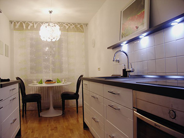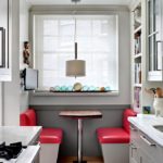 Si petite cuisine, alors il est logique de sortir la salle à manger dans la pièce voisine, mais si cela échoue également, les compacts viendront à la rescousse comptoirs de bar et tables pliantes.
