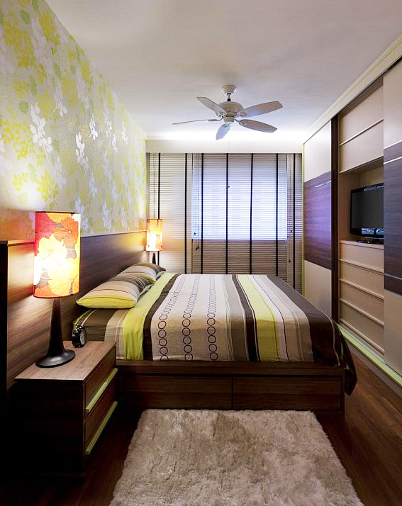 Avec un lit simple, les problèmes ne se posent généralement pas. Si vous voulez mettre un lit plus grand, vous devez tout calculer soigneusement. Il est préférable de le placer sur la tête du mur contre un long mur, mais une autre option est autorisée. Dans les cas extrêmes, vous pouvez faire glisser le lit d'un côté contre le mur.
