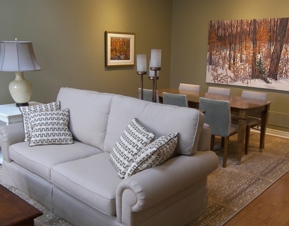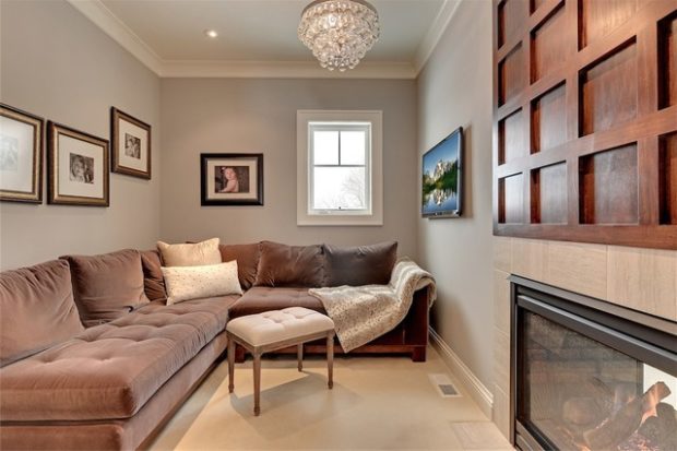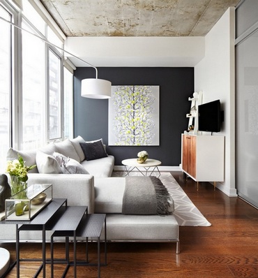 - petit le canapémis à travers la pièce. La plupart du carré se transformera en un salon de la bonne forme carrée, et un plus petit peut être utilisé comme armoire;