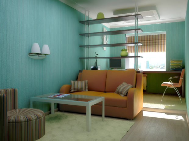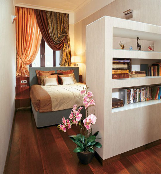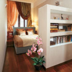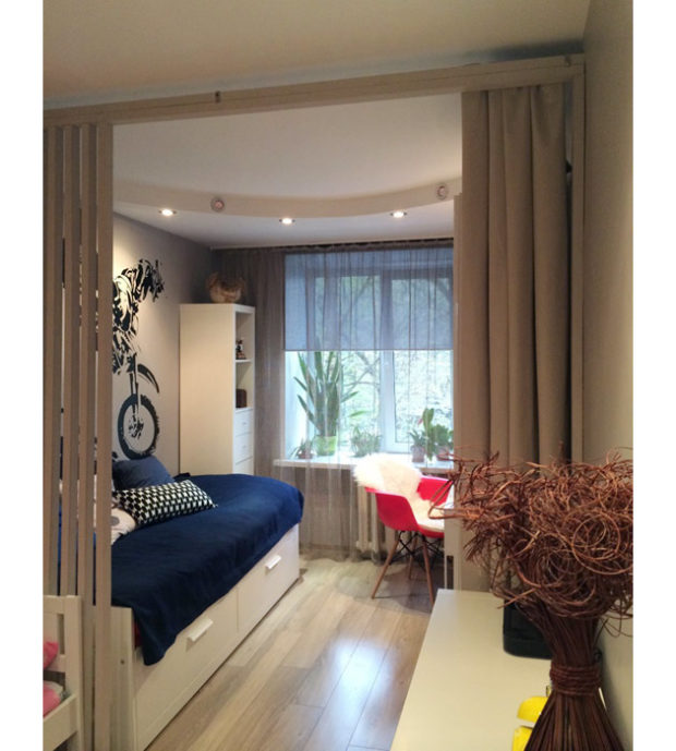 - cloisons, écrans et rideaux mobiles conviendra lorsque dans une pièce étroite et longue il est nécessaire d'allouer une place pour dormir et recevoir des invités, par exemple.