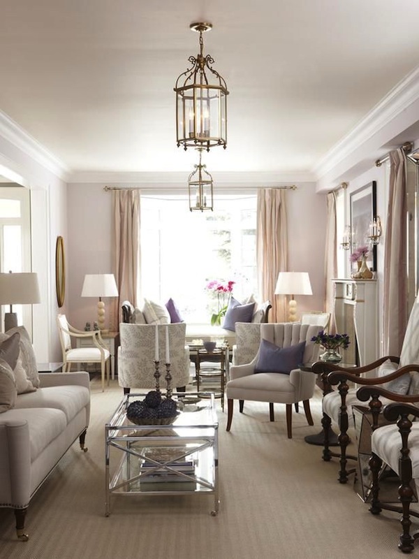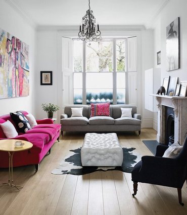 - les tapis avec des rayures parallèles aux murs courts sont un excellent moyen d'agrandir l'espace.Un effet similaire a les rangées de lampes situées perpendiculairement aux longs murs.