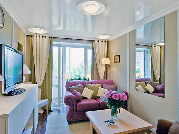 Les règles décrites ci-dessus sont également valables pour tous les espaces longs et étroits, mais néanmoins, lors de l'aménagement de différentes pièces (salon, chambre, etc.), il convient de prendre en compte certaines nuances.