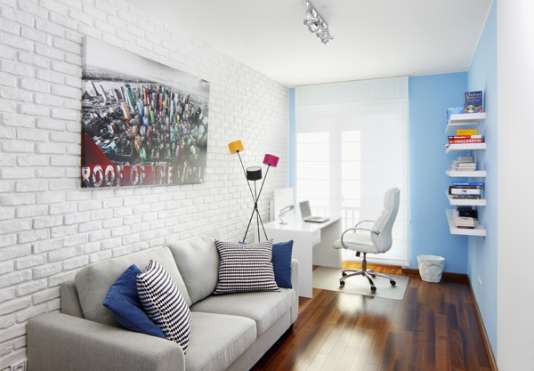 - moquette contraste avec la couleur du sol.Dans ce cas, tous les coins de la pièce seront éclairés calmement par la lumière du soleil, mais en même temps, le salon, par exemple, sera clairement séparé de la zone de travail avec un bureau;
