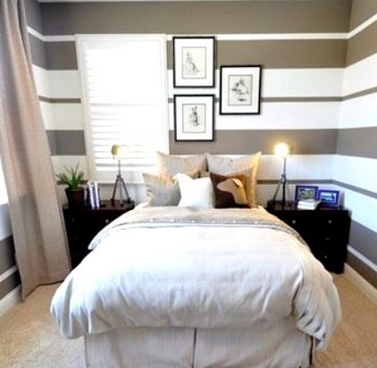Certains designers recommandent d'utiliser l'un des murs courts pour la décoration. rayures horizontales, qui "appellera" partiellement le long mur adjacent.