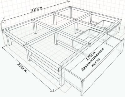 - préparation d'un dessin, qui reflétera les dimensions et la forme du podium, l'emplacement du cadre de décalage, les dimensions des tiroirs et d'autres détails. N'oubliez pas de considérer l'épaisseur des barres et du matériau de revêtement;