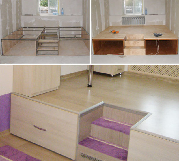 N ° 6. Podium dans l'appartement de vos propres mains: le principe du travail + vidéo