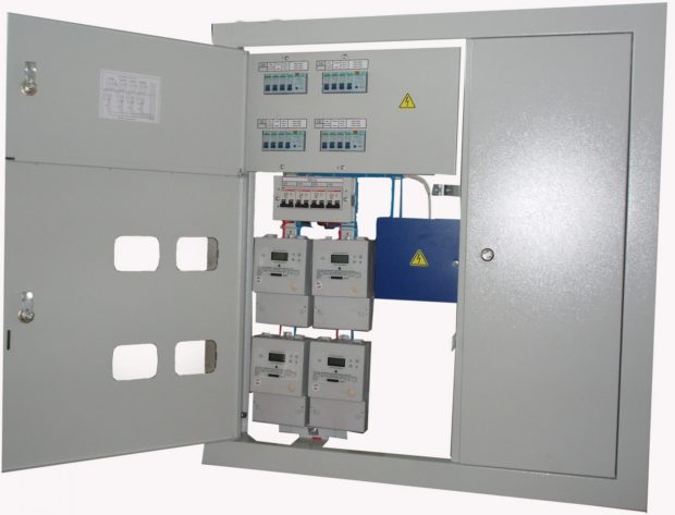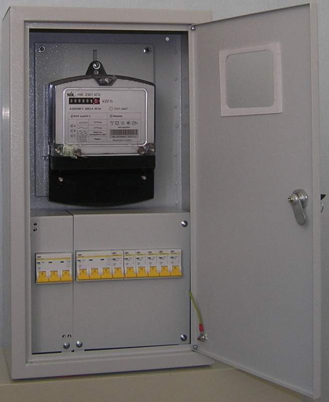 - tableaux de comptage et de distribution se distinguent des appareils du type précédent par la présence d'un rail pour le montage des dispositifs de protection sur les lignes sortantes. Ils ont également un compartiment pour un dispositif de commutation d'entrée, qui est fermé par un couvercle et peut être scellé.