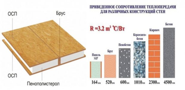 - faible conductivité thermique. Les panneaux d'une épaisseur de 160-170 mm peuvent remplacer mur de briques 2,42 m d'épaisseur;
