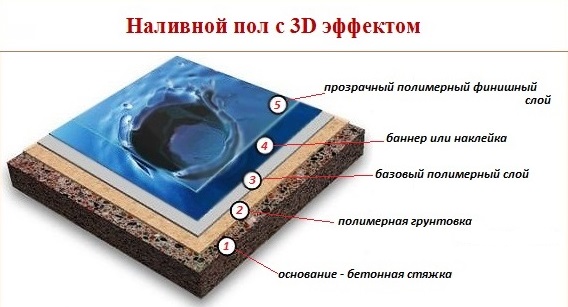 - planchers en vrac Ce sera cher, ils sont difficiles à installer et encore plus difficiles à démonter, mais ils vous permettent de réaliser un revêtement monolithique, qui peut être absolument de n'importe quelle couleur et texture, décoré de coquilles ou de galets. Vous pouvez utiliser n'importe quelle image ou même votre propre photo.