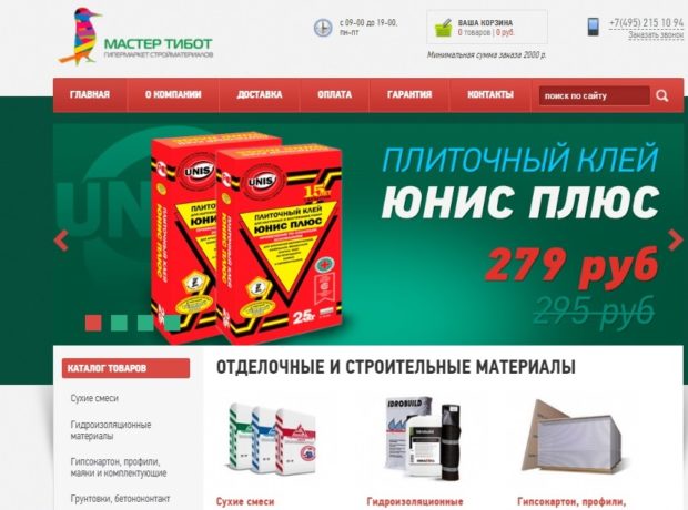 Une solution de compromis peut être appelée matériaux de construction magasins en ligne. Ils diffèrent par un assortiment énorme et les prix les plus avantageux, car le loyer et les autres dépenses sont ici beaucoup plus bas. De plus, lors de l'achat en ligne, vous pouvez gagner beaucoup de temps. Le seul point négatif est l'impossibilité de voir le produit et de le toucher avant l'achat, il est donc préférable de contacter les magasins en ligne éprouvés. Les résidents de Moscou et de la région de Moscou peuvent être informés que Maître Tibot, un hypermarché de construction en ligne, est un digne fournisseur de produits de construction d'excellente qualité et d'une grande variété d'espèces. Aujourd'hui, le magasin propose plus de 3 000 articles, le site est donc idéal pour les gros achats. Il existe également un produit relativement rare que les petits magasins n'effectuent pas de ventes en raison de sa faible popularité. La gamme est en constante expansion et réapprovisionnement.