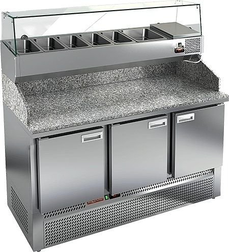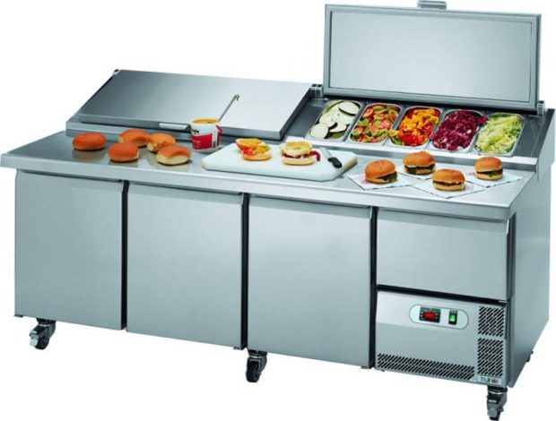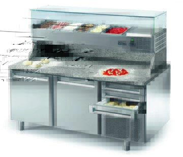 - pour la pizza. Ils peuvent également avoir des conteneurs spéciaux pour les garnitures et les garnitures; ils diffèrent par la présence d'une surface refroidie.