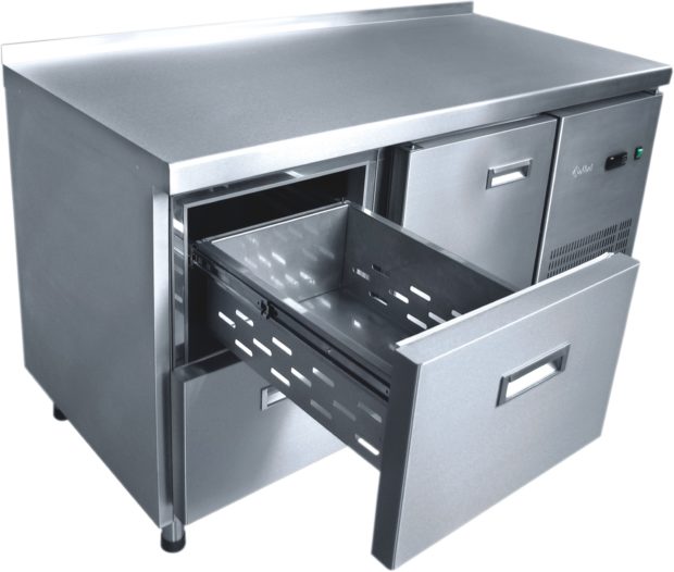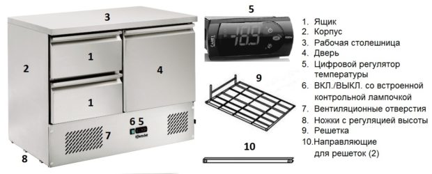 - table de réfrigérateur Conçu pour le stockage à court terme de produits frais ou réfrigérés. Il maintient une température dans la plage de -2 ... + 100C. Pendant longtemps, dans un tel équipement, vous pouvez économiser des boissons, des confiseries, des produits d'épicerie et certains autres types de produits, sous réserve des conditions de température nécessaires;