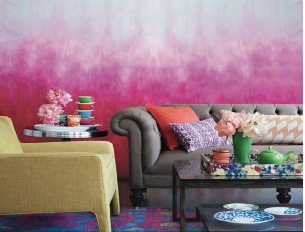 - effet ombre. Il s'agit d'une décision audacieuse et à la mode. En utilisant la transition de la couleur saturée en bas du mur à la lumière et au blanc en haut, vous pouvez obtenir l'effet de fusionner le plafond et les murs. Le résultat est un plafond visuellement plus élevé.