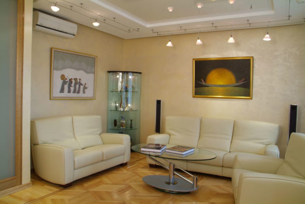 La principale nuance dans la conception des plafonds bas est le choix des matériaux de finition appropriés. La couleur et la texture correctes de la finition représentent la moitié de la bataille.