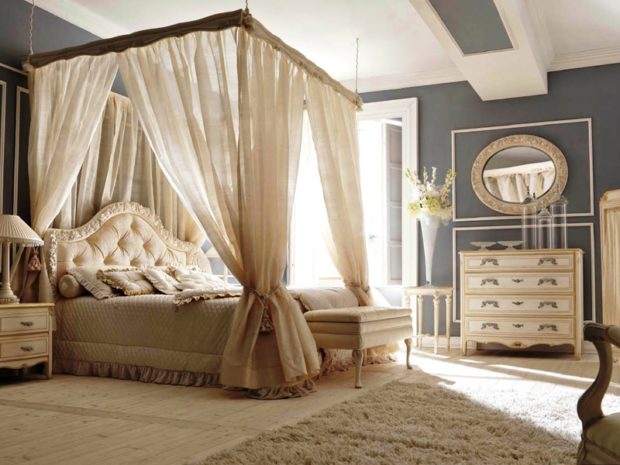 - auvent. C'est le détail qui rend le lieu de couchage plus confortable et isolé. D'un autre côté, les tissus en suspension interfèrent avec la circulation normale de l'air et accumulent de la poussière;