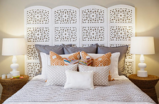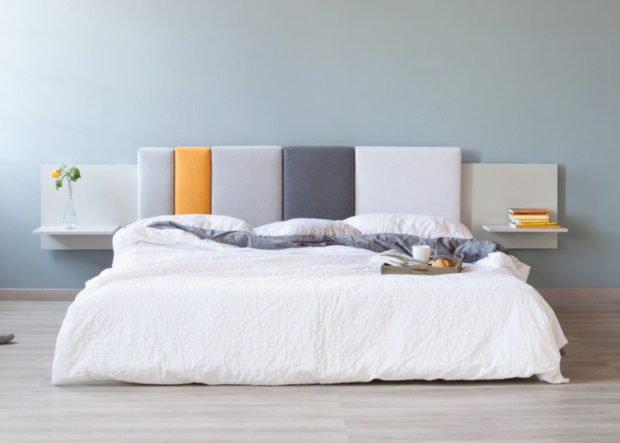 La disponibilité têtes de lit sur le lit Cela dépend de l'endroit où elle se tiendra. Si vous allez placer le lit avec la tête près du mur, vous pouvez facilement vous passer d'un dos séparé. Un mur près de la tête peut être distinguépar exemple panneaux muraux souples, pierre artificielle, peinture ou papier peint d'une couleur différente. Il y a des décisions plus audacieuses: les conseils, écrans, coupes d'arbres, etc. Au-dessus de la tête de lit, vous pouvez organiser une étagère pour ranger les choses nécessaires ou purement décoratives.Parfois, une telle étagère coule en douceur dans le système de stockage, qui se poursuit sur les côtés du lit.