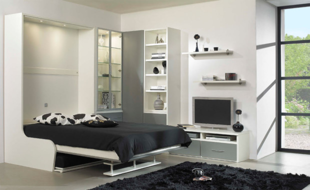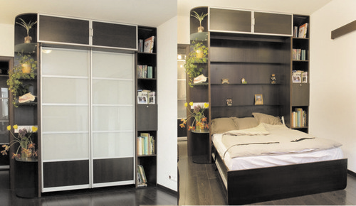 Il est clair que tous les appartements ne peuvent pas accueillir un grand lit fixe. Doit souvent être content canapé pliant comme un endroit pour dormir, mais il existe des alternatives. Ce sont les soi-disant lits transformables ou lits de garde-robe. Pendant la journée, ils sont maintenus près du mur et n'interfèrent pas avec la libre circulation, et la nuit, grâce au mécanisme de pliage, ils se transforment en dormeur complet. Pendant la journée, un tel lit peut servir de faux garde-robe, être décoré d'une jolie photo ou même se transformer en un petit canapé.