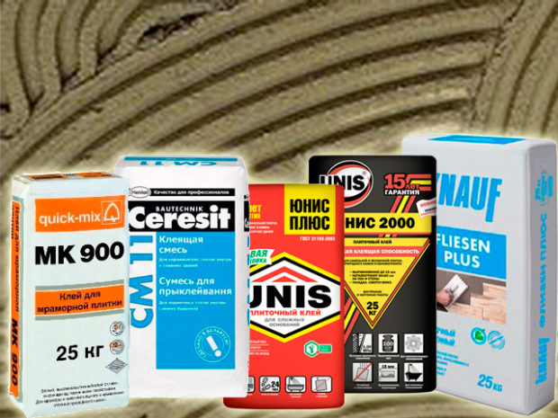 - pour une base stable simple vous pouvez prendre de la colle à base de ciment ordinaire, les compositions avec des additifs au latex sont excellentes;