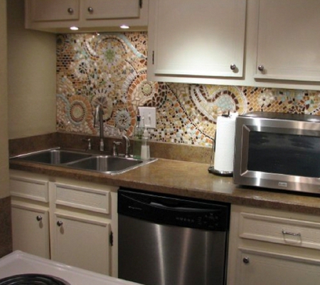 - vous pouvez enregistrer et utiliser la mosaïque avec l'habituel carreaux de céramique. Le résultat est décoration intéressante à un coût minime;