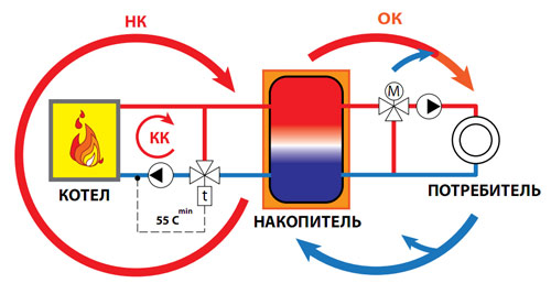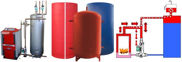 Il n'est pas très intelligent et économique de drainer l'eau chauffée dans les égouts, il est donc préférable de compléter la conception d'une chaudière à combustible solide réservoir de stockage. Il s'agit d'un tampon entre la chaudière et le reste du système de chauffage, grâce auquel il est mis en œuvre un certain nombre de fonctions importantes: