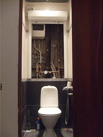 Pour l'avenir, nous notons que les volets sont moyen idéal pour masquer toutes les communicationssitué au-delà cuvette de toilette. Quelqu'un peut objecter qu'il est plus facile de tout cacher sous une boîte cloison sèche ou doublure - il est esthétiquement agréable et peu coûteux. N'oubliez pas que vous ne pouvez pas masquer les communications étroitement - vous devez y avoir accès, c'est pourquoi une petite trappe est fournie dans de telles boîtes, mais elle ne permet souvent pas de sauvegarder, car sa taille ne permet pas un accès normal à toutes les zones tuyaux. Si quelque chose se produit, vous devez casser la peau entière, ce qui est de la saleté, de la poussière et de longs travaux de restauration. De plus, si la porte de la trappe est articulée, il est nécessaire de prévoir un espace suffisant pour l'ouvrir, et si petite salle de bain, cela peut entraîner des problèmes.