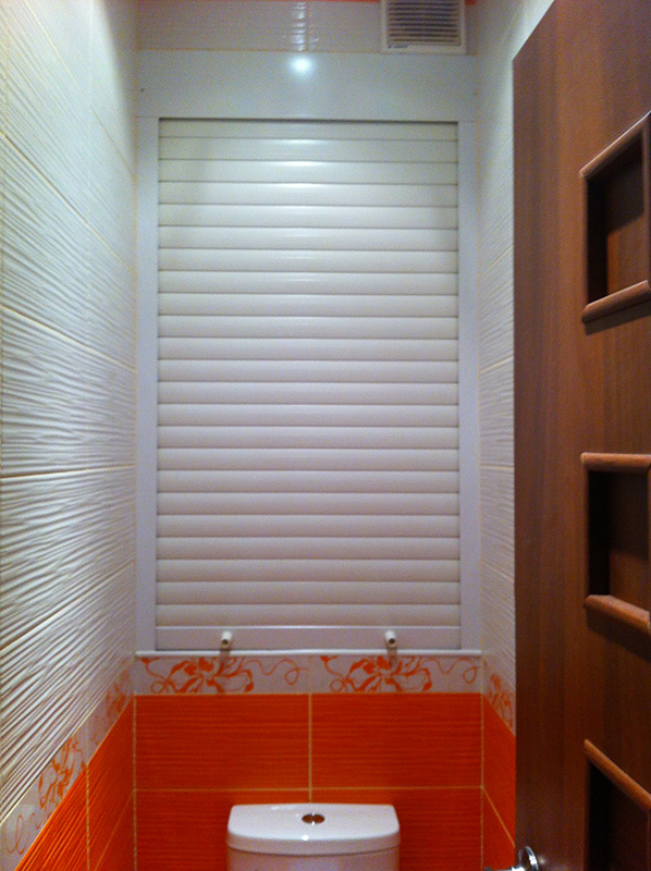 Bien sûr, peu de gens veulent installer de puissants volets en acier avec un profil renforcé dans les toilettes. C'est plutôt une excellente option pour protéger les ouvertures de fenêtre. Une conception plus simple convient à une salle de bain, mais les nuances individuelles de son exécution dépendront bien sûr des préférences personnelles, ainsi que du type de toilettes (publiques ou personnelles).