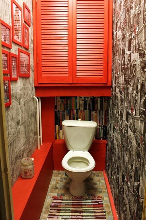 - volets roulants contrastés les gens qui n'aiment pas les intérieurs sobres et ennuyeux l'aimeront, même en ce qui concerne l'intérieur des toilettes. Il est important de combiner correctement les couleurs et de ne pas en faire trop avec le nombre de nuances dans cette petite pièce, il est donc préférable de mettre en évidence deux, maximum trois couleurs, qui seront utilisées dans la pièce. Par exemple, si les murs sont beiges et les volets bleus, ils peuvent être supportés en bleu. un tapis;
