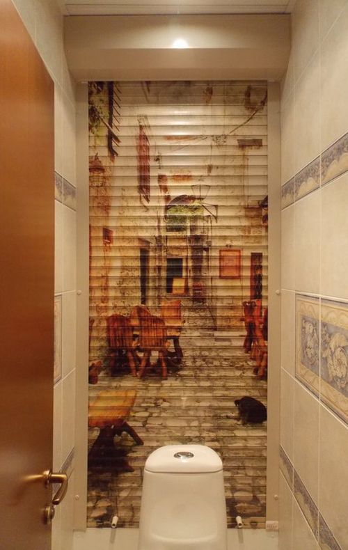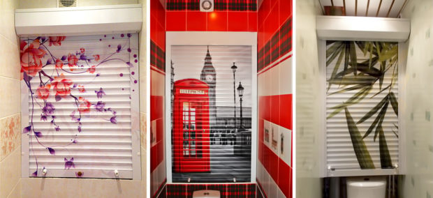 Les fabricants fabriquent des volets roulants de toutes les couleurs et avec l'avènement de l'impression UV, il est également possible d'appliquer des images. Toutes les options de conception possibles pour les volets roulants dans les toilettes peuvent être réparties dans les groupes suivants: