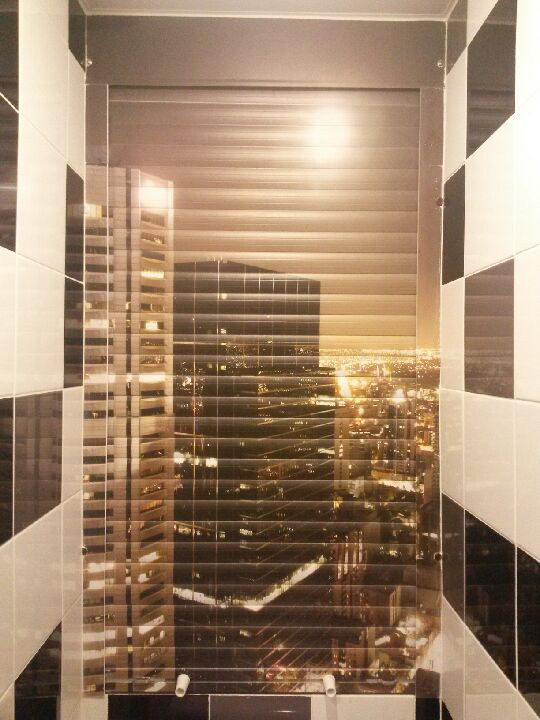- plastique. C'est le matériau le moins cher, mais en aucun cas le pire.Il n'a pas peur de l'humidité, il est facile à laver (comme les stores ordinaires), il ne supporte pas la corrosion et la moisissure, et une telle conception ne pèse pas beaucoup. Nous ajoutons une grande variété de nuances à la liste des avantages, de sorte que le volet en plastique s'intègre dans n'importe quelle salle de bain. Le principal inconvénient est sa faible résistance, mais si vous ne vous appuyez pas sur la structure, tout ira bien. En termes de durabilité, les volets roulants en plastique sont bien sûr inférieurs à l'aluminium et à l'acier;