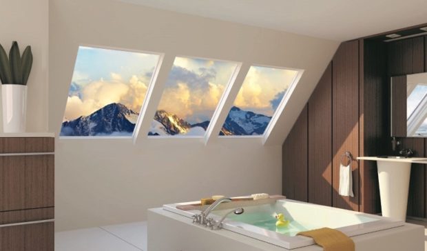 La taille de la fenêtre peut être quelconque - tout dépend de vos préférences et des caractéristiques des pièces adjacentes. Cela peut être une ouverture de taille standard ou une cloison en verre au sol. Quand ce sera nécessaire prendre sa retraite, se cacher des regards indiscrets aider les stores, ordinaires ou stores enrouleurs - en général, tout ce qui nous sauve dans le cas d'une fenêtre ordinaire.