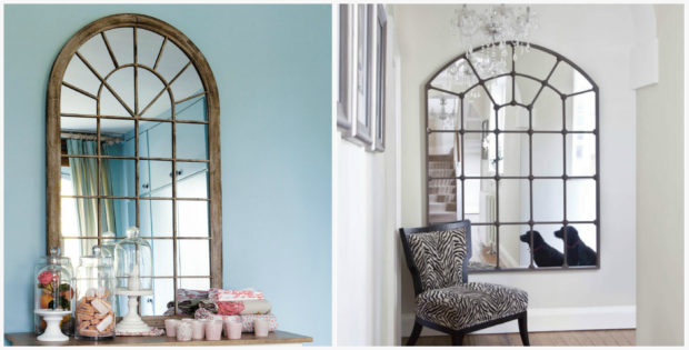 - fenêtre miroir avec imitation de séparation en parties. Cette décision fait vraiment croire que la pièce a une fenêtre, surtout si vous y trouvez le bon endroit et le plus naturel. De plus, le miroir agrandit l'espace et double la lumière rare - tout un wagon d'avantages. Vous pouvez compléter un tel miroir rideaux ou un rideau lumineux, mais l'essentiel est que le textile ne recouvre que légèrement la surface du miroir. Pensez à appliquer un motif de sablage au miroir;