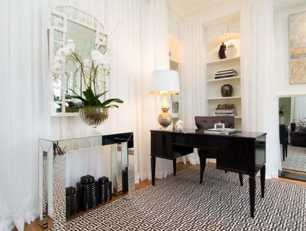 Avec miroirs, brillant et brillant il est important de ne pas trop jouer. Si vous allez trop loin, la pièce deviendra lumineuse, mais toujours inconfortable, et de nombreux reflets gêneront et causeront de l'inconfort.