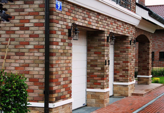 Si vous voulez obtenir un résultat spécial, vous pouvez combiner plusieurs teintes dans le revêtement de façade. Par exemple, les ouvertures de fenêtres et de portes se distinguent par des briques plus foncées. Vous pouvez utiliser des briques de deux ou trois couleurs différentes de manière chaotique. Toutes les expériences sont les bienvenues, mais l'essentiel est de bien réfléchir à l'avance au résultat que vous souhaitez obtenir. Il est conseillé d'acheter une brique en quantité suffisante pour terminer la totalité du travail. Sinon, vous pouvez rencontrer le fait que les produits de différentes parties varient en nuance. La différence, bien sûr, semblera presque imperceptible, mais une fois tous les travaux de revêtement terminés, vous verrez une transition de couleur évidente.