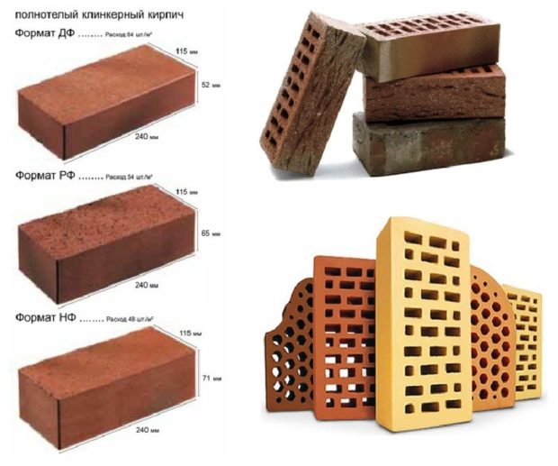 Le monde de la production de briques est établi depuis longtemps norme uniquequi sont guidés par tous les fabricants. La brique unique, et cela s'applique aux produits en clinker, a des paramètres 250 * 120 * 65 mm et désigné 1 NF (le format dit normal). Ces produits peuvent être corsés ou creux, sont utilisés à la fois dans la construction et dans le revêtement - en général, ils ont trouvé l'application la plus large.
