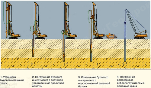 Faisons une réserve tout de suite, la méthode buranaibivny ne concerne qu'indirectement les méthodes d'immersion des pieux, car dans ce cas, les pieux sont créés immédiatement sur le site, mais nous allons également la décrire brièvement. Les pieux sont créés en construisant un cadre de renfort dans un puits pré-préparé, qui est ensuite coulé béton. Un puits est créé à l'aide d'une perceuse à percussion ou rotative.