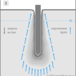 Grâce aux vibrations transmises au pieu par des équipements spéciaux, de manière significative la friction et la résistance au sol sont réduites. C'est pourquoi, pour plonger des pieux à la profondeur de conception, il faut souvent beaucoup moins d'efforts que lors de la conduite. Il ne faut pas oublier qu'en vibrant de la même manière qu'avec la méthode du choc, compactage du sol environ 1,5-3 pieux de diamètre (tout dépend du type de sol), nous pouvons donc parler de l'apparition de capacités portantes supplémentaires.